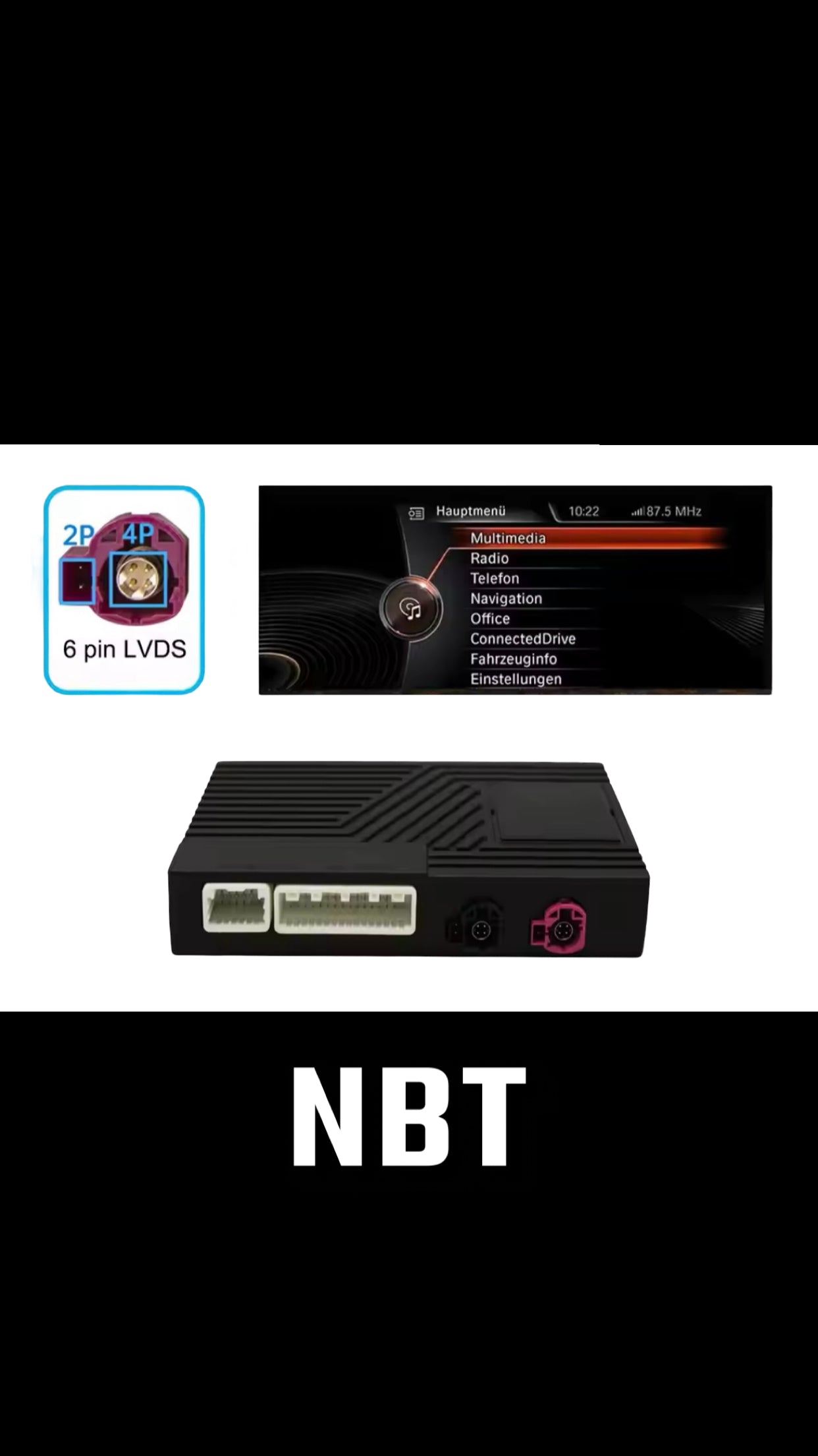 Boîtier Apple CarPlay / Android Auto en Bluetooth pour les BMW X1 équipées d'un poste NBT ou CIC.